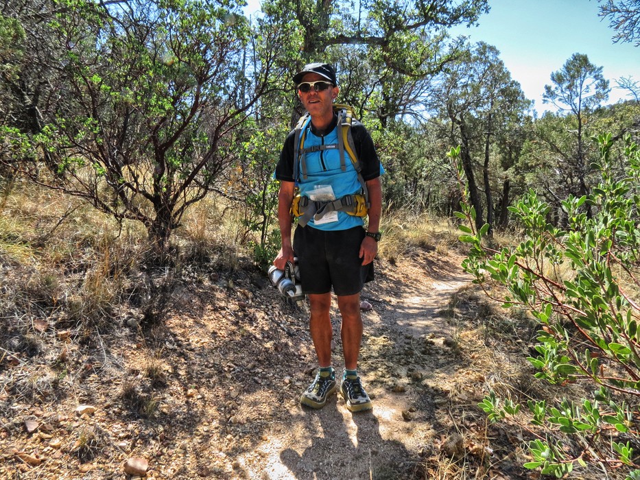 Ran into this fellow who is attempting to hike/run the whole AZT (800+ miles) in 3 weeks. This was on Tuesday about 10 am. He had started at the AZ/Mexico border, 72 miles away, on Sunday morning. He has to average about 40 miles per day. Carries about a 10 pound pack. He had been written up in the AZT Assoc e-News that I read a few days before we hiked so I thought we might pass him (we were going south and he was going north). You can follow his progress here http://trackleaders.com/azt. I wish him luck.