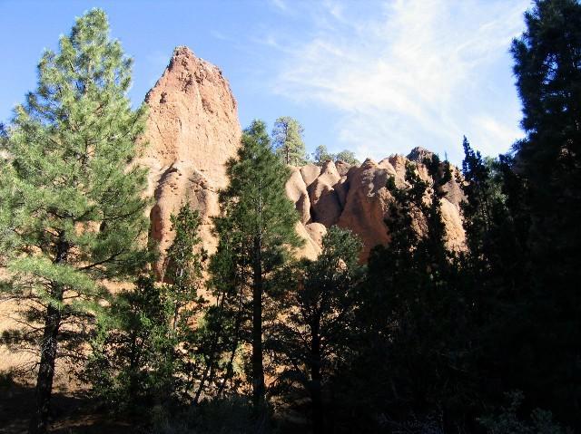 You come upon some black lava formations that act as a gate to the place. You will soon reach a 6 ft high silted-up check dam over which a ladder has been built to allow access to the inner area. The optional route is a scramble up the cinder shoulder to the right and between the "gates" and down the other side. If you are hiking with dogs, this is your route. Once you reach the top, you will have to navigate a short section of exposure and somewhat slippery footing to gain access to the area where you can descend to the inner areas. Once inside the trail heads a short way in and then you are off exploring among the spires, pillars, and pinnacles. The predominant color is earthy reds punctuated by mustard and black. This is the heart of a million-year-old volcano, and the volcanic tuff has been sculpted into various shapes. You can follow any number of avenues to explore the area. The area has re-vegetated, and you will find pondererosa pines growing out of the tuff. I chose to follow the stream bed back into the curving tuff formations following a trail of a variety of bushes and flowering plants supported by the stream. Interesting formations were at every bend, and the rocks were beautifully sculpted... Looking up at the horizon, you could see the spires extend all the way up to the ponderosa-clad ridgeline. Birds were nesting in hollows along the sheer wall -- marked by splotches of white bird droppings were their favored perches. Light plays hide and seek among the spires and hoodoos, and so can you. Be watchful as you scramble up these formations -- most are a lot easier going up than down! After a bit of exploring, we returned by way of the cinder hill exit and were quickly back to the trailhead. On the return trip you are treated to some expansive vistas of the Flagstaff mountains. Note: Water is not available along this trail. Gate Policy: If a gate is closed upon arrival, leave it closed after you go through. If it is open, leave it open. Leaving a closed gate open may put cattle in danger. Closing an open gate may cut them off from water. Please be respectful, leave gates as found. The exception is signage on the gate directing you otherwise. Check out the Official Route and Triplogs. Leave No Trace and +Add a Triplog after your hike to support this local community. |