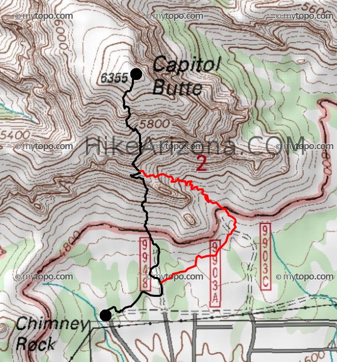 Soak up Sedona! by Jim ![]() ![]() Capitol Butte is a seldom climbed mountain just west of Sedona's main strip. It separates the 89A corridor from the hikes of west Sedona. It is pretty much the only highpoint in Sedona that is right in the center of it all, and I think it has the best views in town. Unfortunately, it's not an easy hike. Instead, it is a challenging non-technical climb to what will be a well-earned summit. The Route From the trailhead at the end of Andante Drive, hike the Andante Trail northeast from the parking area. After around 1000 feet of hiking, you'll come to an obvious cross trail. Take the cross trail towards the lower slopes of Capitol Butte. The trail starts easy but gets harder as you approach the base of Capitol Butte. As you move closer, you will notice that the rough trail is taking you to an exposed area where you will make the first climb up on to a ledge. From below the climb up this pitch may look impossible, but as the trail takes you closer it becomes clear that you will be climbing up a small angled ledge which is exposed, but very possible to climb.