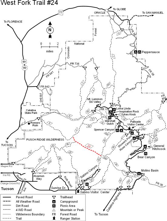 Hutchs Pool is full year round by keepmoving ![]() ![]() West Fork #24 is a 6.8 mile (according to the Forest Service...) segment of the Arizona Trail that winds through the Sabino Basin and connects several popular front range trails in the Pusch Ridge Wilderness. While it is probably best known as a popular access point to Hutch's Pool, experienced hikers can take advantage of West Fork #24 to connect multiple trails and create their own unique route through the wilderness. Hike This summary will describe the trail as hiked from East to West as this is likely the most common route, often hiked by those intending to reach Hutch's Pool.