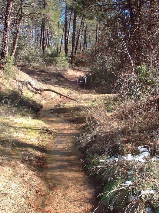 Eventually, the trail tops out around 5700 feet and begins a short 1/4 mile 300-foot descent into Big Pine Flat - an impressive forest of some towering ponderosa pines and seasonal streams. This is also the southern terminus of the trail as it meets up with FR 422a. This vicinity is quite scenic. There are some large boulders and few campsites scattered about (looks like a great place to camp). While I was there, snow was on the ground and was melting, creating a torrent of water in a couple of these unnamed streams which leads me to the best part about this place. If you follow the stream for about 100 feet, you will come across two successive and, shall I say, rather impressive waterfalls. The water was just gushing and shooting out from these falls. The first one was probably about 6 feet tall, but the second was probably close to 20 feet tall. Unfortunately, my camera did not do justice in my opinion to these falls, but these are the best pics I could come up with. After spending about 45 minutes up in this area, I decided to turn around and huff it back to my car, about 14 miles round-trip. Normally, I would rate this trail about a 2 or 3, but due to such a great destination, I'll be rating this trail a 4. Check out the Official Route and Triplogs. Leave No Trace and +Add a Triplog after your hike to support this local community. One-Way Notice This hike is listed as One-Way. When hiking several trails on a single "hike", log it with a generic name that describes the hike. Then link the trails traveled, check out the example. |