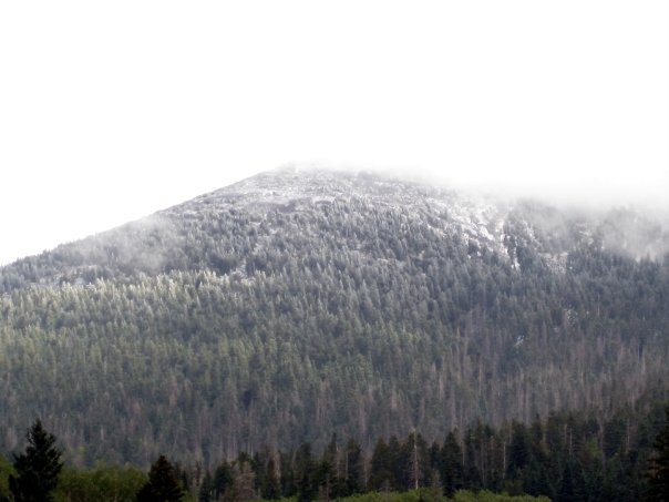 From Snowbowl's Facebook page ... today registered the first snowfall on the peaks. The photo is of Humphrey's.