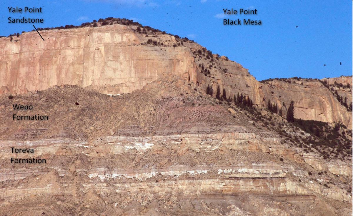 Black Mesa is one of the largest physiographic features on the Colorado Plateau of northern Arizona. The mesa covers ~3,200 square miles and rests on Cretaceous Mesaverde Group sedimentary rocks: from youngest to oldest, Yale Point Sandstone, Wepo Formation and the Toreva Formation. All of which rest on the older Mancos Shale and Dakota Formation. The Mesaverde Group contains the largest deposits of coal in Arizona. From the mid-1960s to 2008, Peabody Energy strip mined coal here. All mining activity ended in 2019. Reclamation of the former strip mines proceeds slowly.