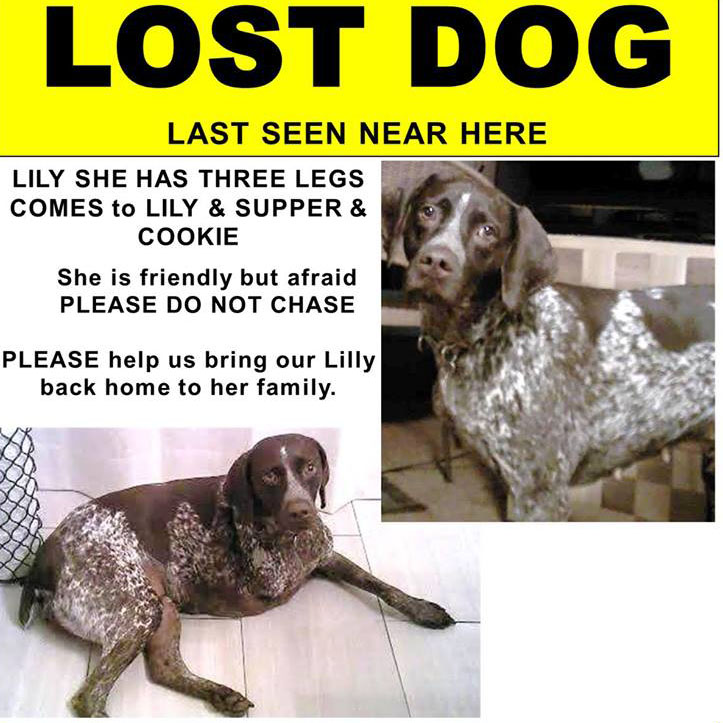 2/02/2014 -A three Legged Shorthaired Pointer went missing.
