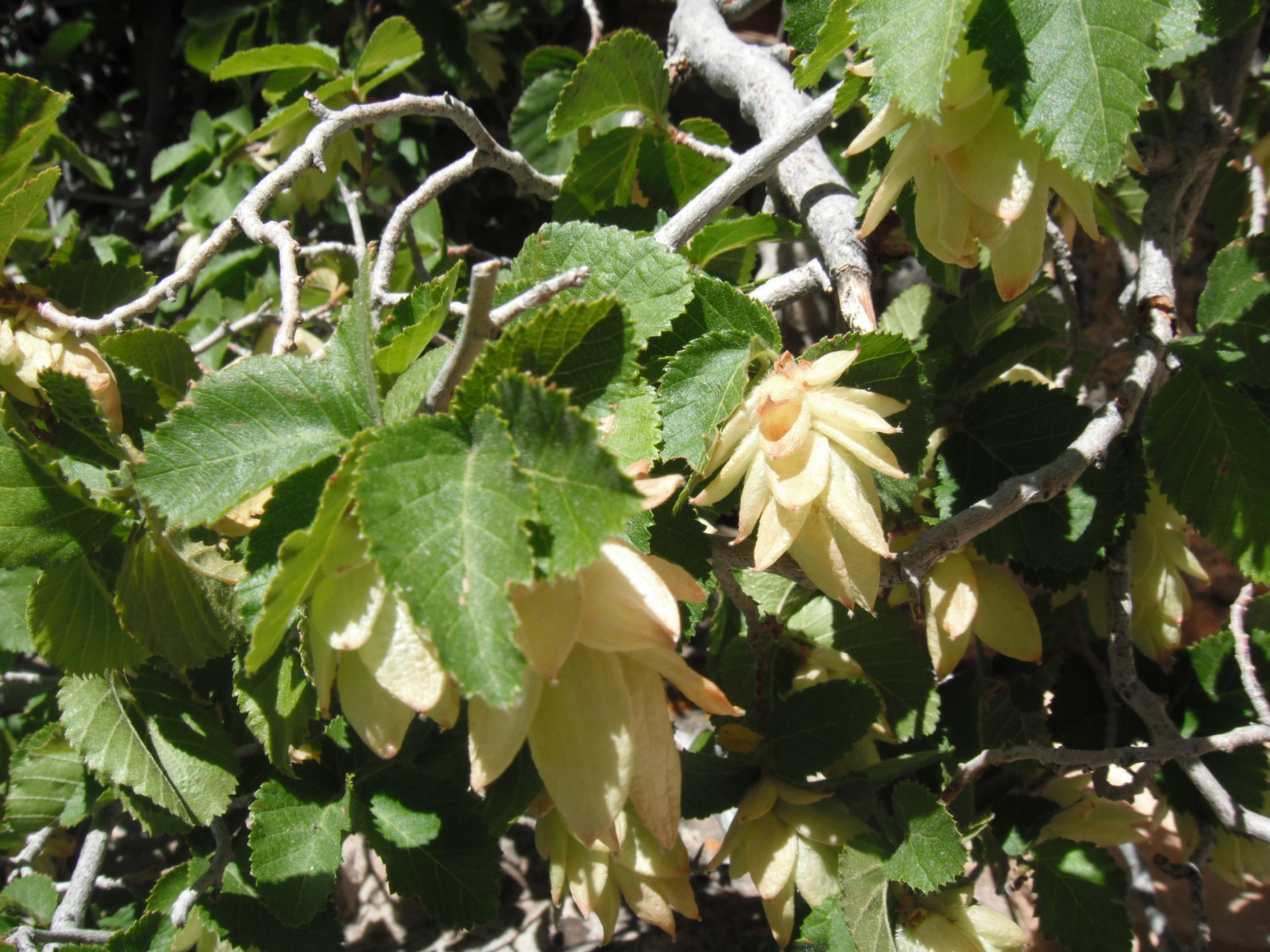 Glenn goes on to say: " Ostrya knowltonii, endemic to the southern Colorado Plateau, in canyons of the Colorado and Oak Creek Canyon area, as well as outliers east of El Paso in the northern Chihuahua Desert. This plant is included in Nancy Brian's special status plants of the Grand Canyon. It is fairly common in Grand Canyon, in the right habitat, which is mostly very dense, brushy, north facing slopes that are more mesic than surrounding terrain; places we humans tend to avoid. One odd location in GC is along the Kaibab Trail, on the Hermit Shale, in the open, right next to the trail, just uphill of the rest area in that saddle above O'Neil Butte."