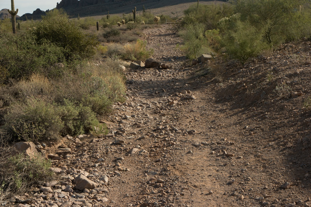 I then drove up McKellips to see what that offered and found little to impress me. Once the blacktop ends, it's a single lane dirt road with very little space to turn around. Just prior to a rock barricade, is parking space for three small or maybe two SUV size vehicles. I don't know if parking is actually permitted here, but no signs (so far). The rocks that block the road are questionable as I believe that this is still a city road and only the city can restrict travel on it.