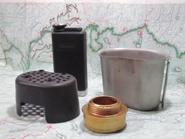 I noted folks who bicycle tour prefer alcohol fueled stoves. I recently acquired a Trangia Spirit burner alcohol fuel stove and a much improved version of the GI canteen cup stand. The stove stand, canteen cup and canteen nest in a canteen cover. I used a 8 oz. Stanley Flask for extra fuel. The canteen cup stove stand can also be placed in campfire coals as well.