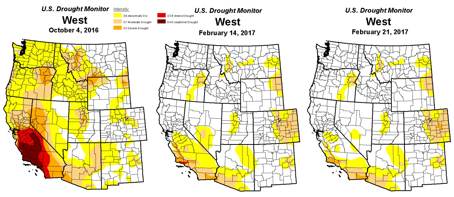 I've put together this week's map vs. last week, as well as the map from the start of the water year in October. It's been a good winter so far!