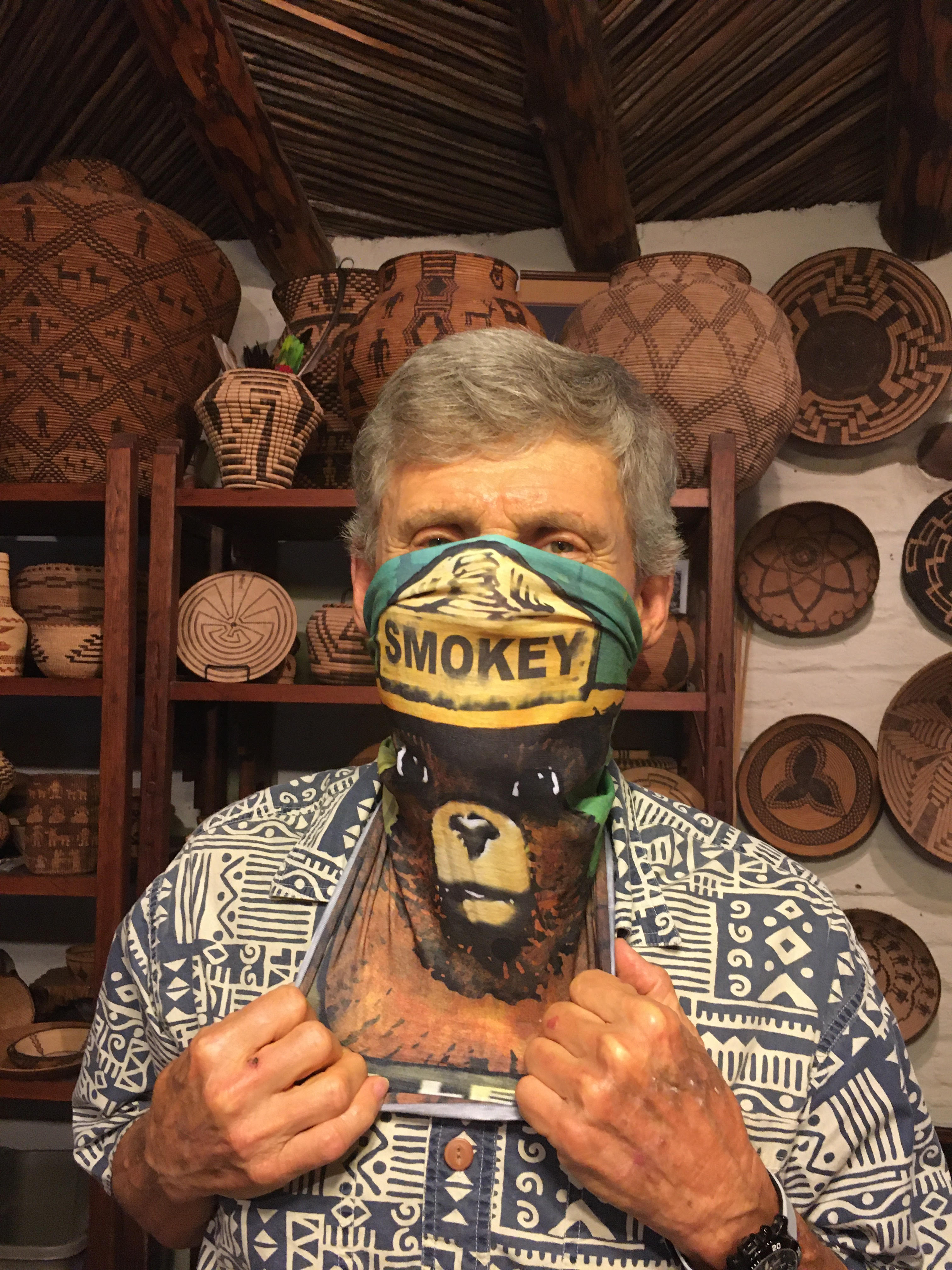 This is the protective Covid-19 balaclava mask that the U S Forest Service has given to the Board at The Friends of Sabino Canyon in Tucson...clever.