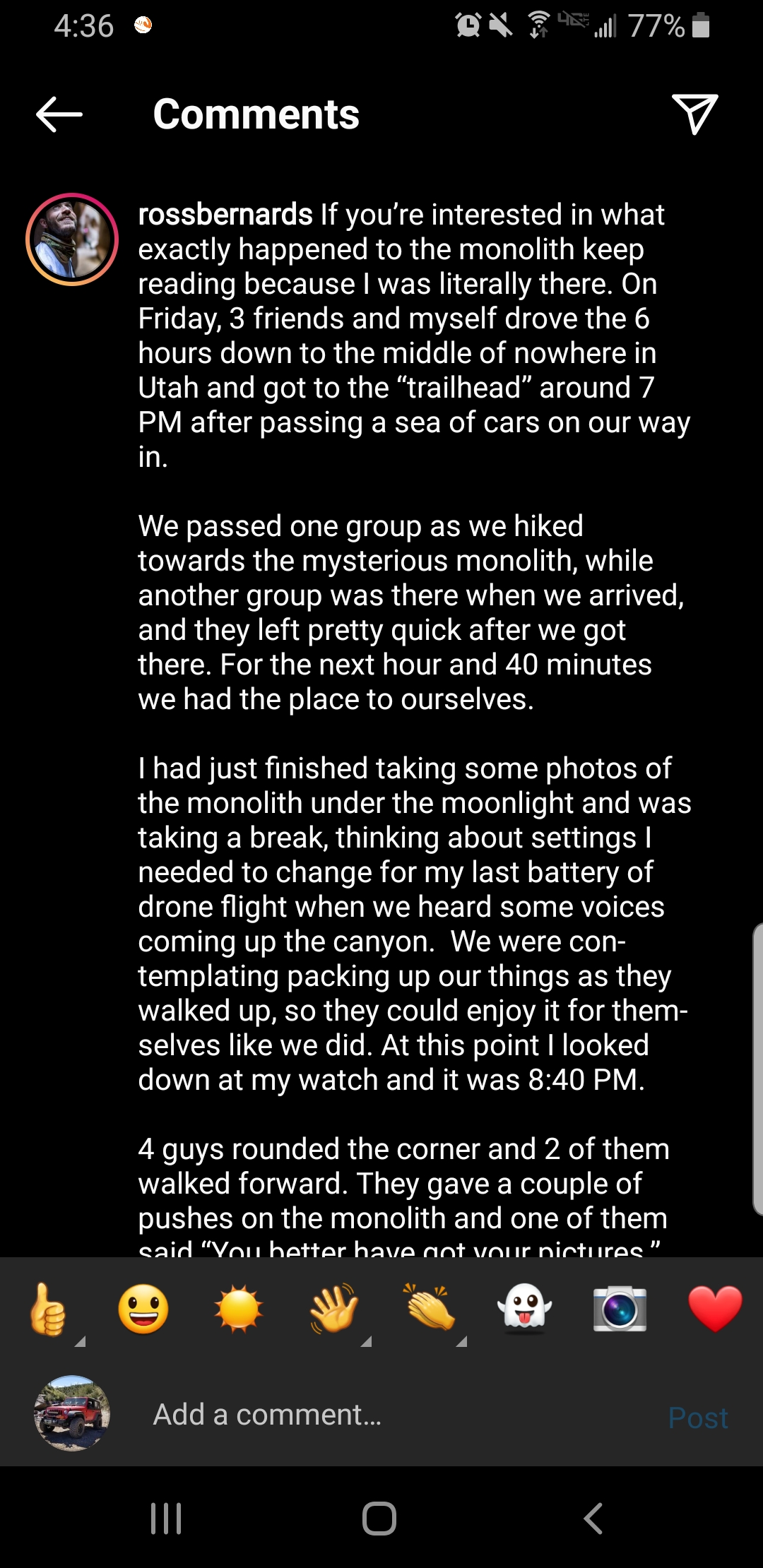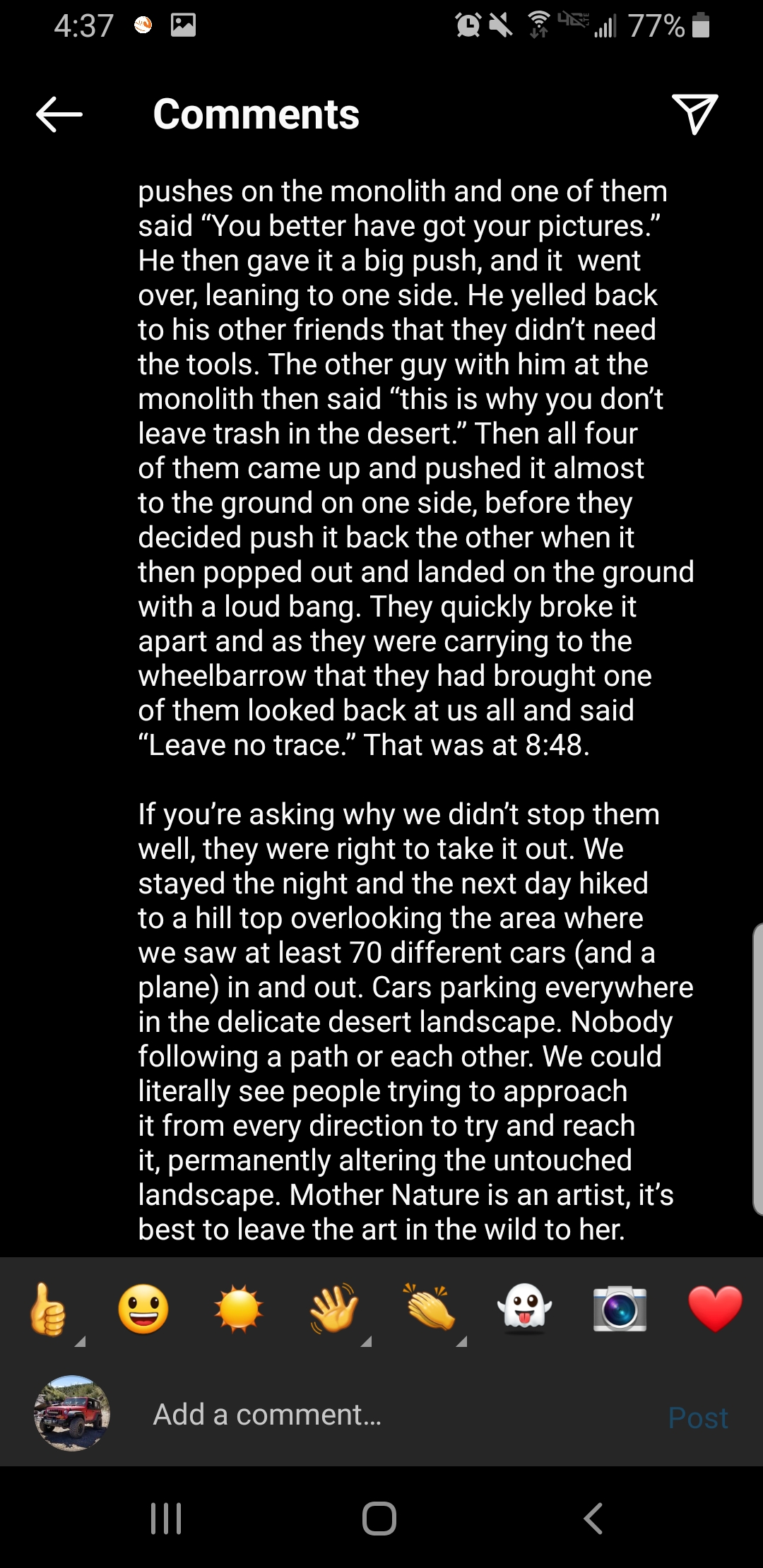 Here is the story of its removal per Instagram so you know. I guess I dont know how to copy and paste from I.G. so I have some screen shots. The guys username is there in case anyone wants to check it out. He has some interesting pictures of "the dudes" and the traffic.