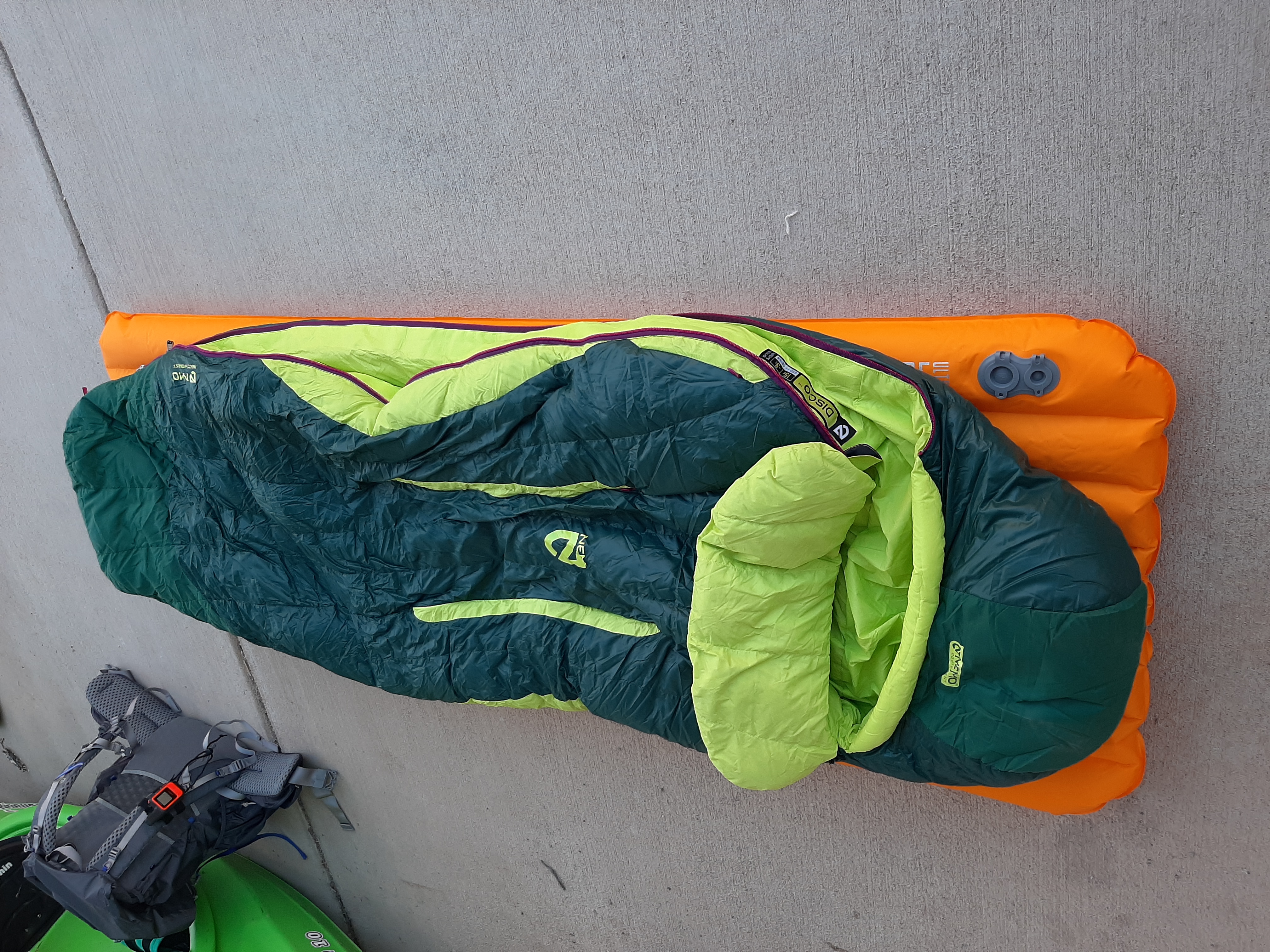 Sleeping bag - NEMO Disco 15 degree women's regular. Retail $300. Like new, used twice. Great bag - light, super lofty and warm. Just a bit too bulky when packed for my smaller ultralight pack, especially with a bear canister. $200 plus shipping, unless you want to pick it up.