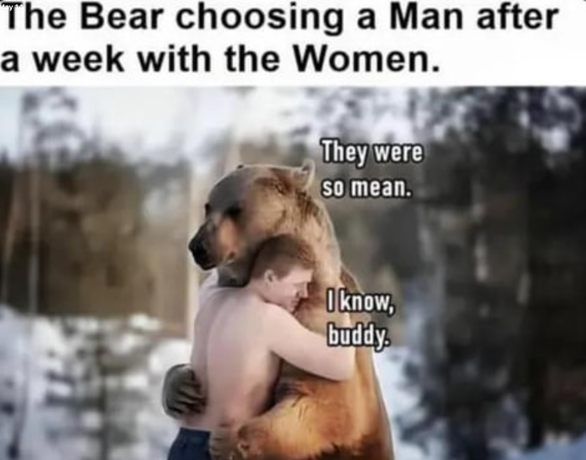Mrs. big_load saw a bear today on the side of the highway near home. It was lying down and was being attended to, probably after being hit by a car. She wasn't optimistic about its prospects.