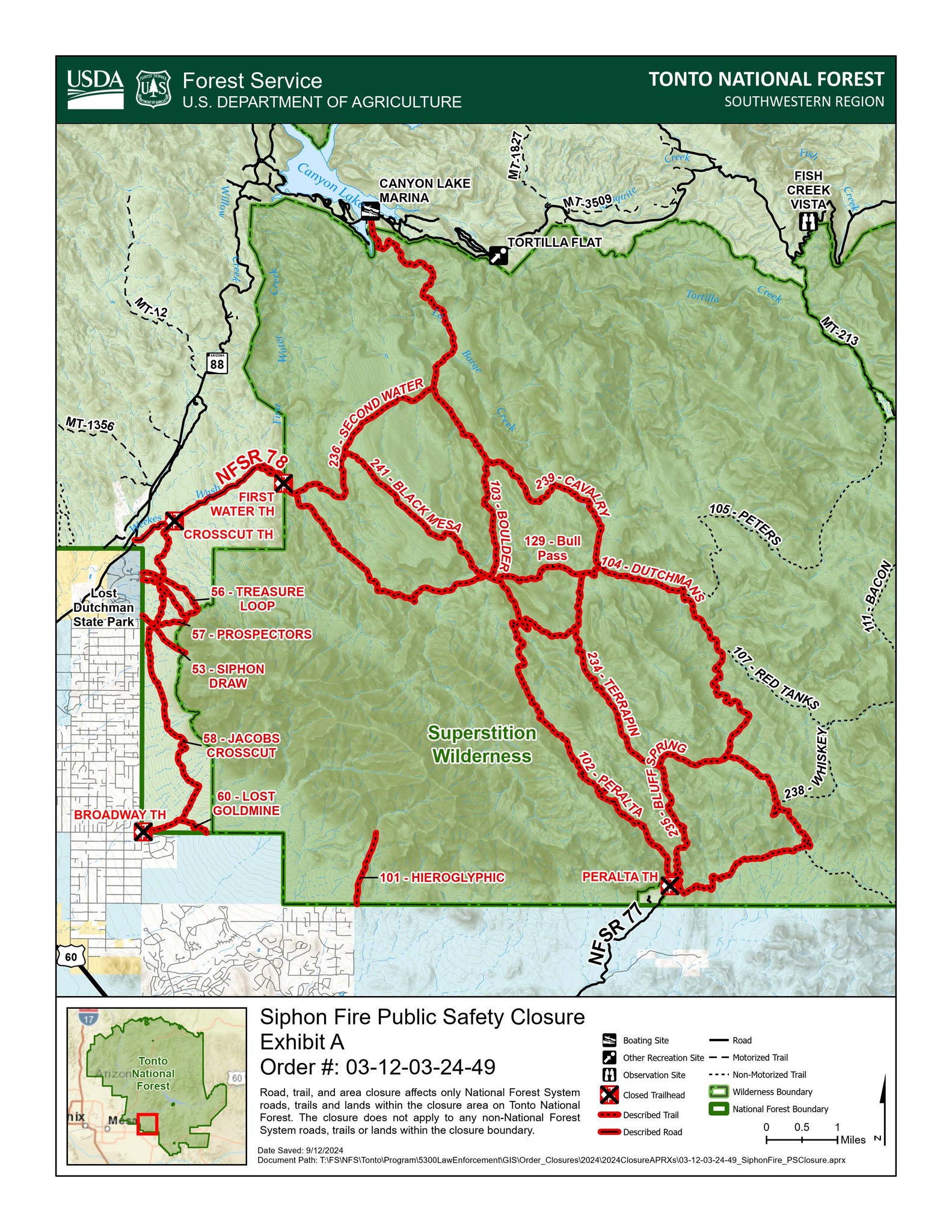 Mesa Ranger District has implemented a Trails and Road Emergency Closure Order to provide public health and safety due to firefighting operations and fire danger associated with the #SiphonFire on the #TontoNF.