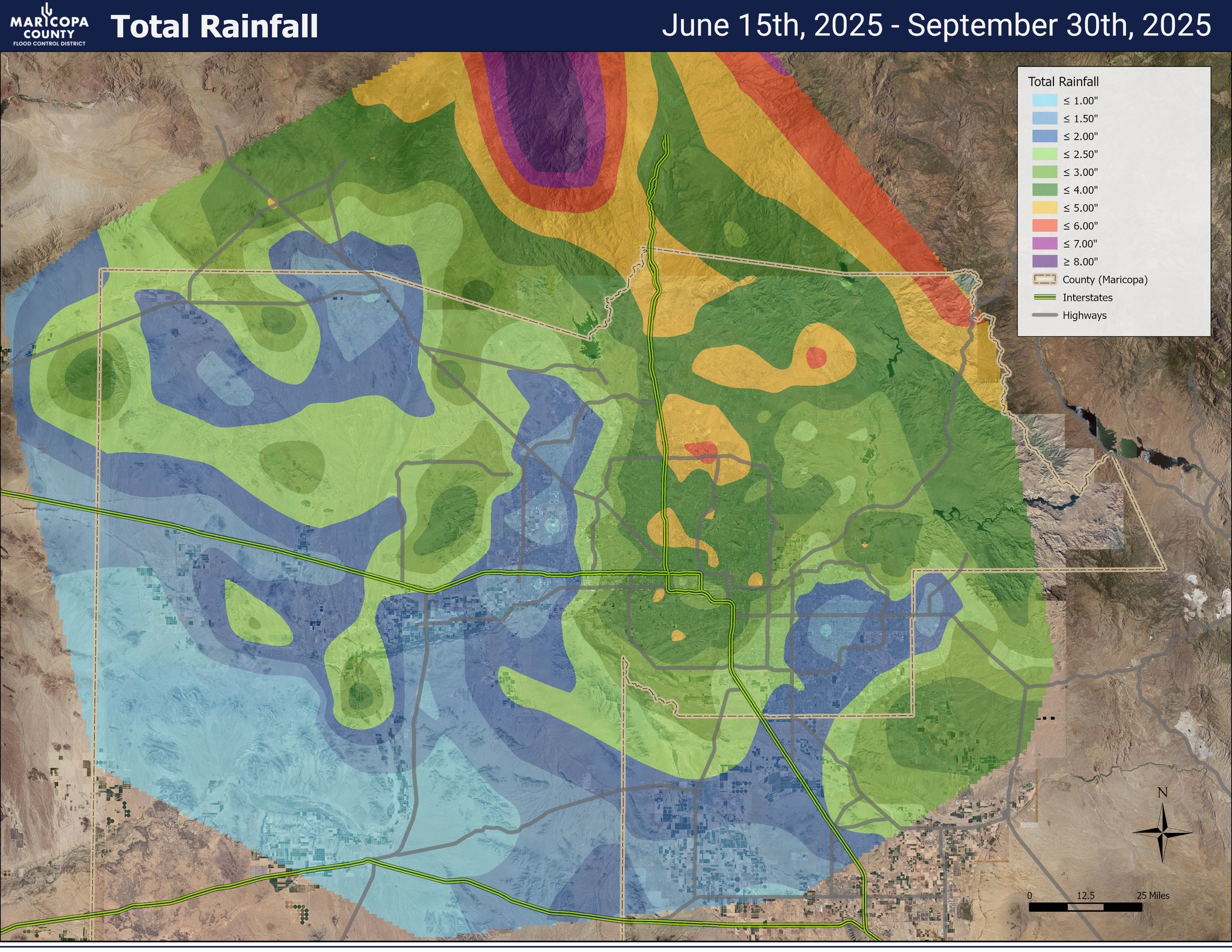 Here's a handful of images that illustrate the data from the 2025 monsoon from across the entire flood control district.