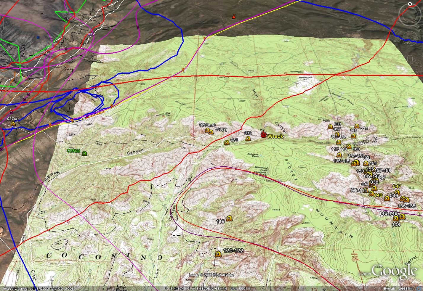 We're still looking for that Cessna 182 that went missing SW of Sedona last fall with my niece onboard (details at http://www.n2700q.com). Now that the snows are gone -- and folks are hiking again -- I'm hoping something will break. Last month I came down from Seattle and took three flights out of Sedona. Still analyzing the hundreds of hi-res pix I shot...