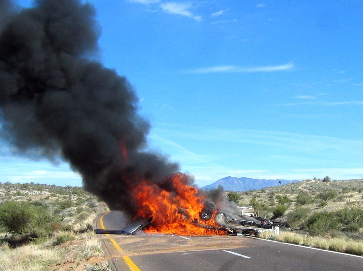 Last time I saw a near-out of control trailer on the Beeline, I had the pleasure of witnessing him get completely out-of-control. He was lucky to walk away after rolling three times. His trailer (loaded with quads ... and apparently fuel) was not as fortunate.