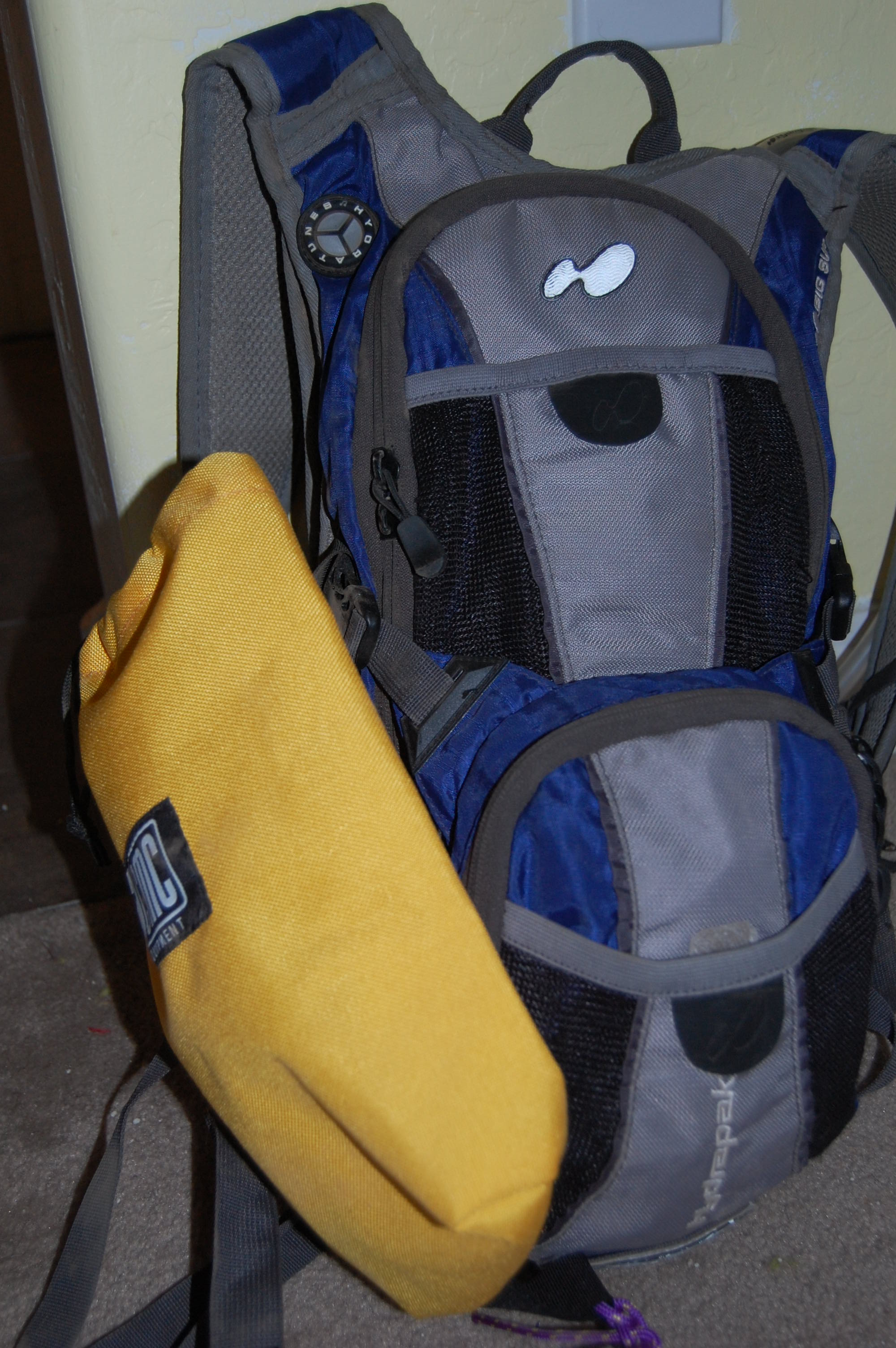 hmm, this is really cool, I have the same problem with my DSLR & hydration pack. a trip to the hiking shack may be in order...!