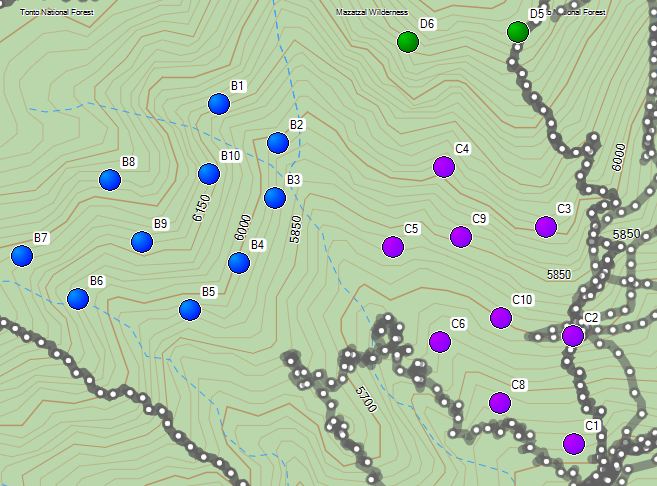 The search areas are set. Here's the link with waypoints: http://hikearizona.com/location_g.php?MY=156. We will split into teams at the TH based on skills, gps, radio, etc. and thoroughly hit these spots covering as much ground in between waypoints as possible. These waypoint areas are based on gaps between what has already been searched. Here are details for Saturday plus needs and things to think about when planning: