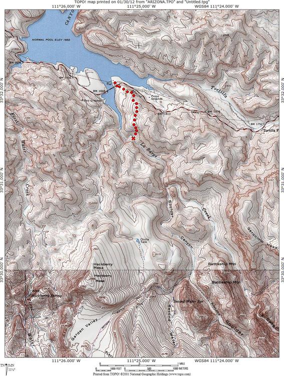 Hiking downstream, you should see an easement up and out of Boulder Canyon about where I have the 'x' on the attached map. igallery/image.php?pic_id=4657