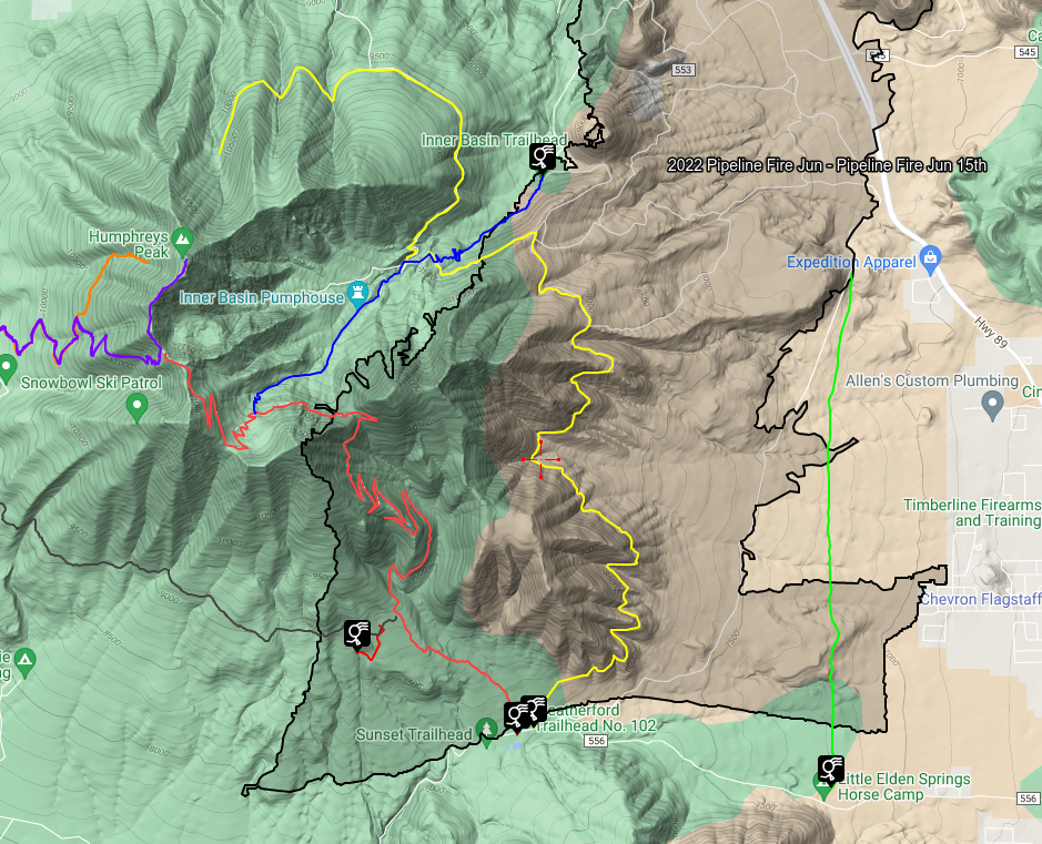 It seems like your hopes will come true, there is no significant fire activity west of highway 89 in the last 12 hours. I'm guessing they went all-in on the air attack strategy today.ddgrunning wrote: ↑Jun 15 2022 11:38 am Reports that the Pipeline fire is now 31% contained, and that a lot of resources are focused on preserving Lockett Meadow and the inner basin area.