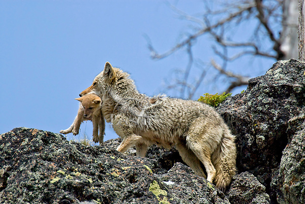 A baby coyote being carried to a different den perhaps? But without a clearer picture I don't think anyone can say for sure.
