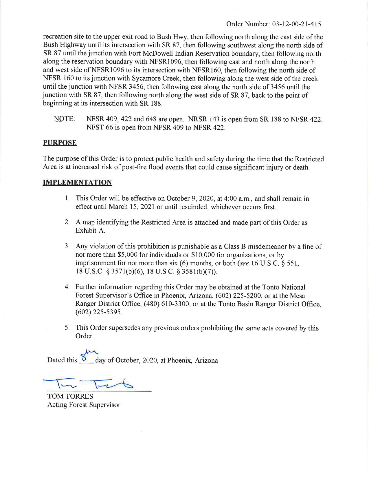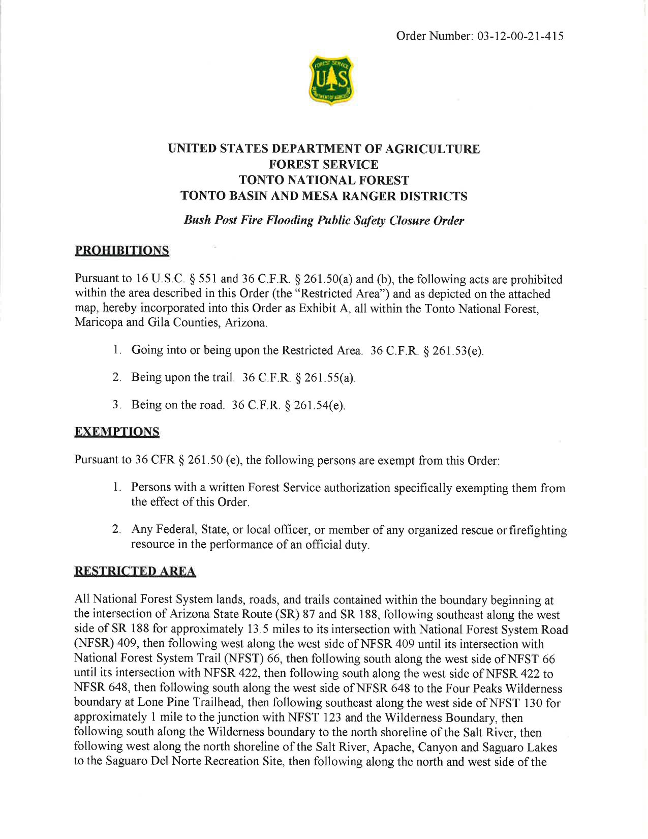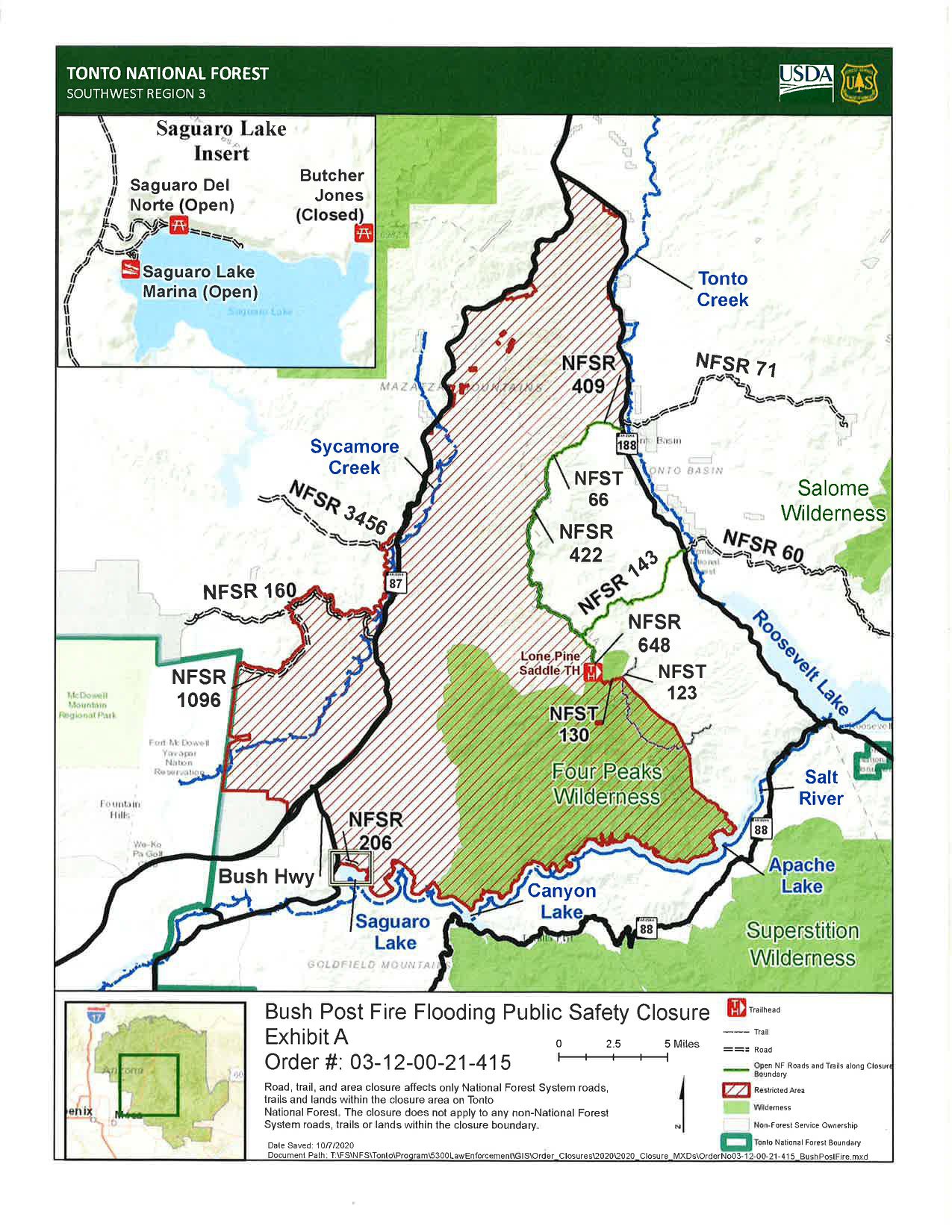 #TontoNF officials are reinstating the original Bush Fire area closure area to protect the public from an incoming weather system that has the potential for flash flooding over the weekend. This expanded area public safety closure will be in effect Saturday, Oct. 24, 2020 at noon.