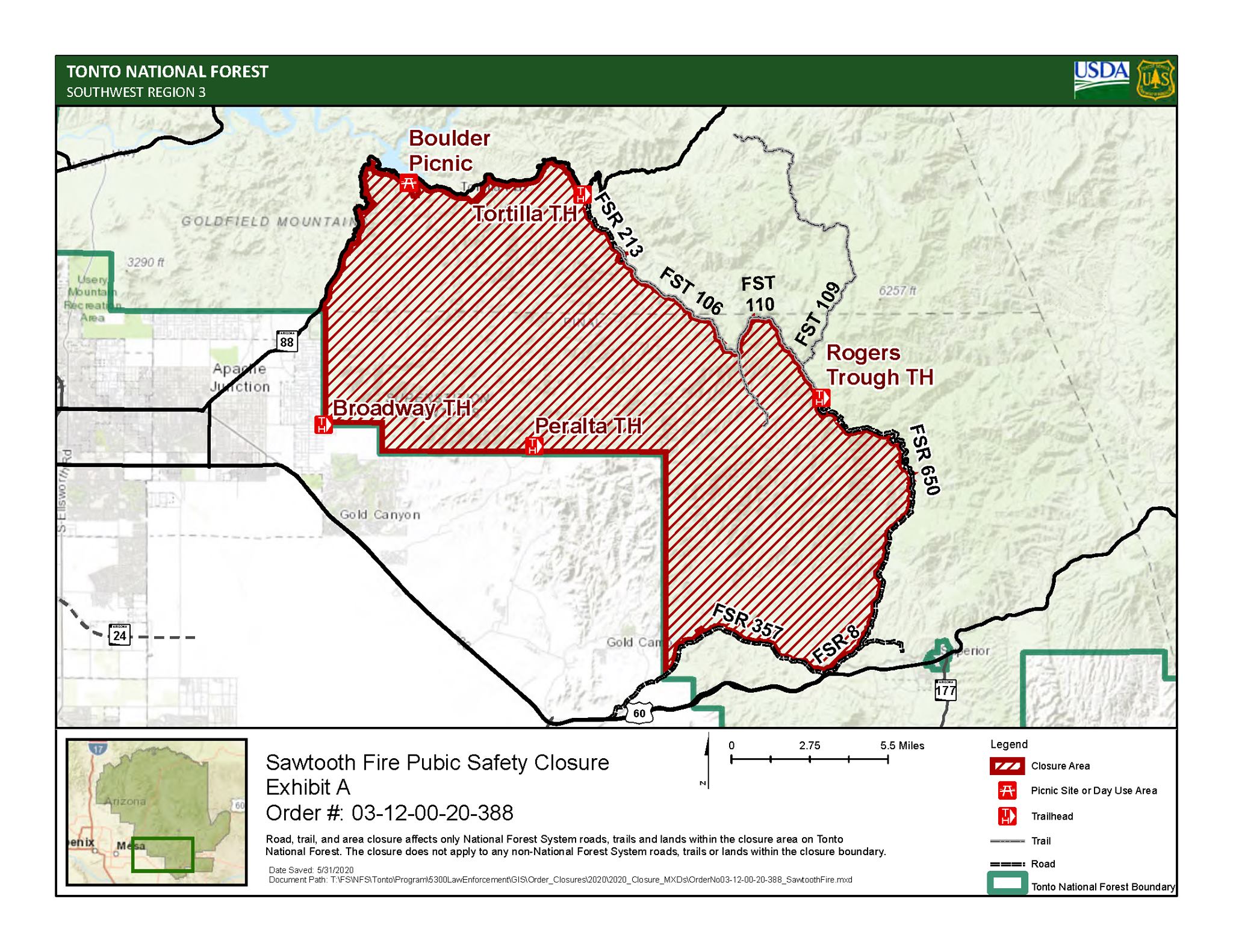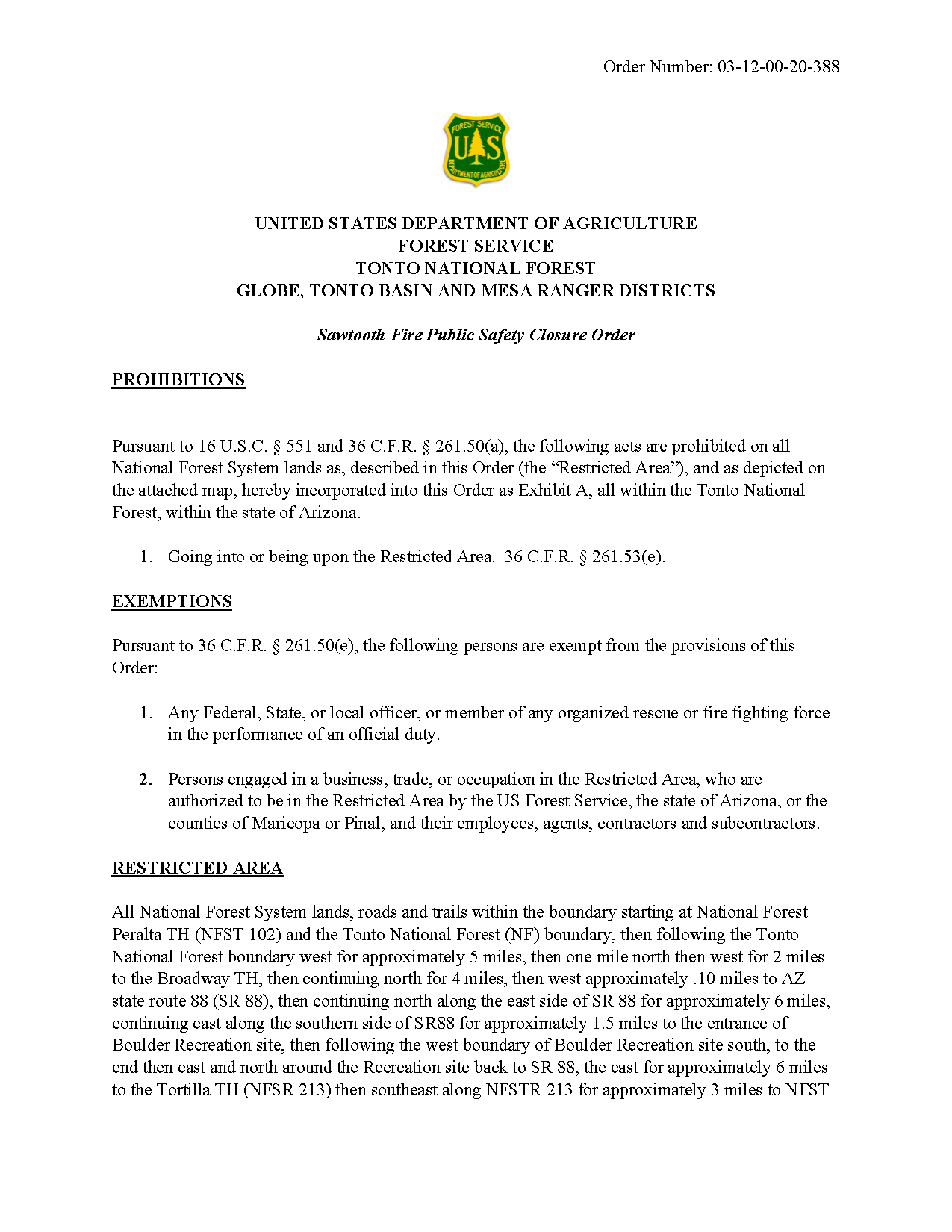 I'm not really sure what closure order they're talking about, unless they're just talking about Peralta Rd. Still nothing on the forest website.