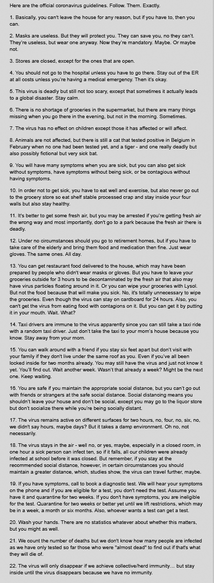 Here are the official coronavirus guidelines. Follow. Them. Exactly.