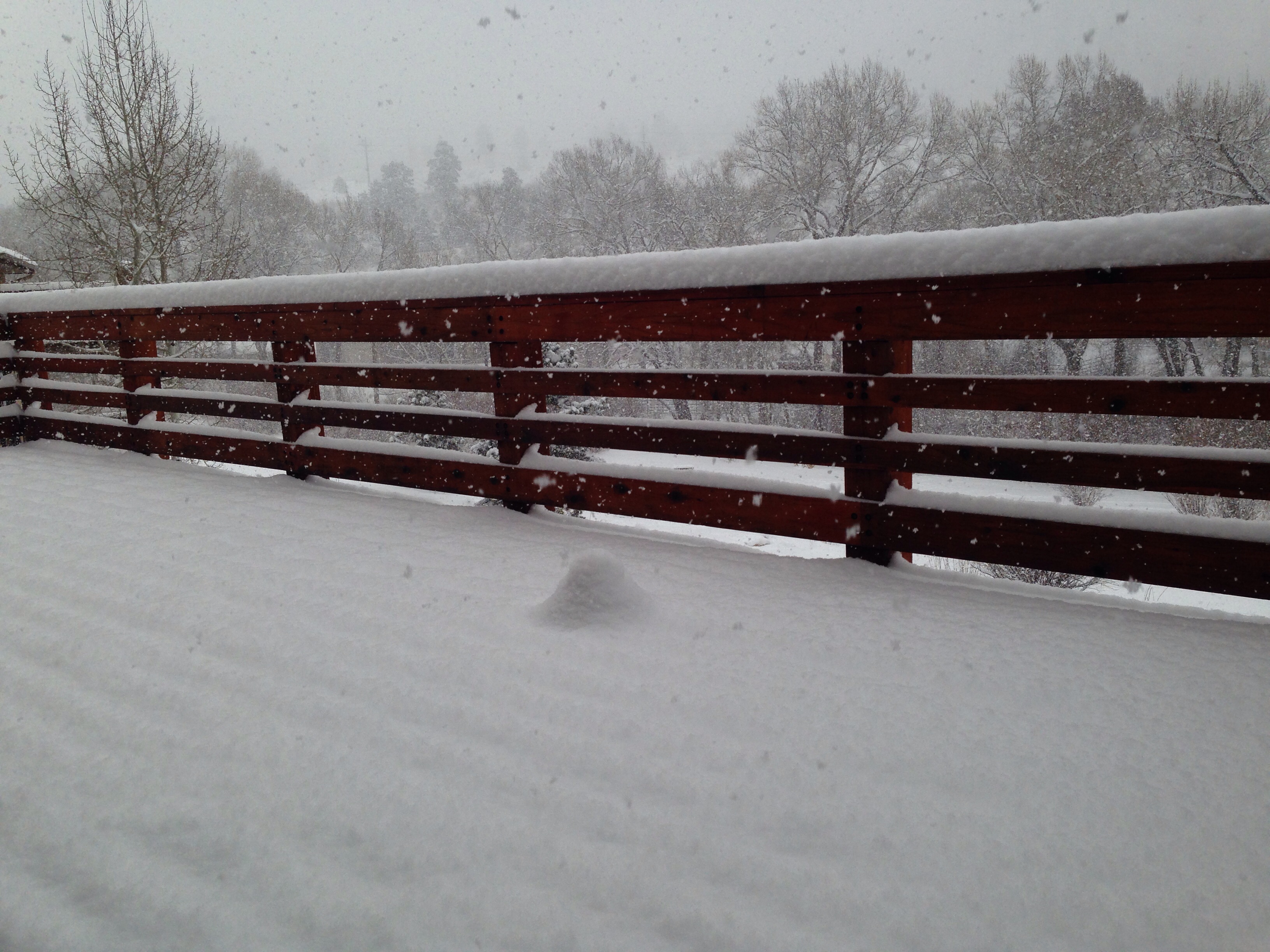 It's safe to say we exceeded the forecast snow as evidenced by the soccer ball on my deck.