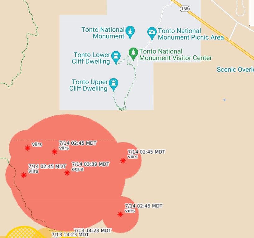 Black Fire near Roosevelt causing problems. Tonto national monument and others on Go status; Roosevelt Marina and Rv park area on Set status. 8K acres per inciweb.