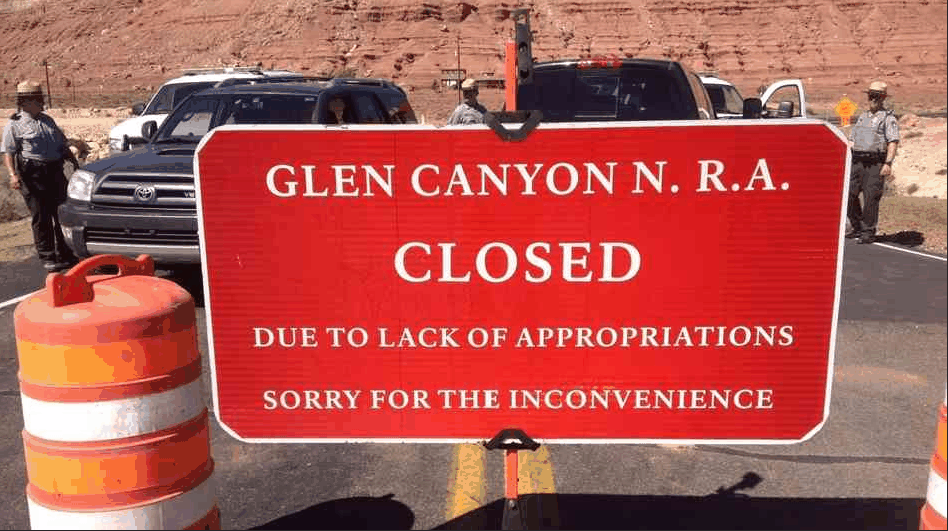 That exact sign was made for the April 2011 govt shutdown that was averted at the 11th hour. I have a photo of that exact same sign taken back then, in April 2011, behind the ranger station at Lee's Ferry.