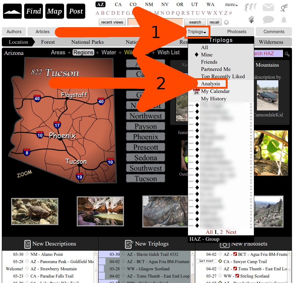 Look on the top of the page and click on "triplog Analysis." Then once you are there, you can click on the subheadings, so that miles are featured, or elevation, etc. etc.