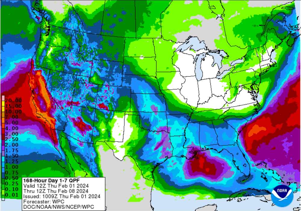 Mild next week! However, still rather dry despite the recent parade of storms, which I have thought of as nuisance storms since they delivered little moisture. Others are starting to say what I have been saying and the winter is now likely to end up drier than normal. Nothing in the 7 day models, and the extended models say warmer and drier than normal. Who knows, maybe February will be a wet month? Probably not. At least dry winters tend towards wet summers, and who knows, maybe an earlier start to summer rains.