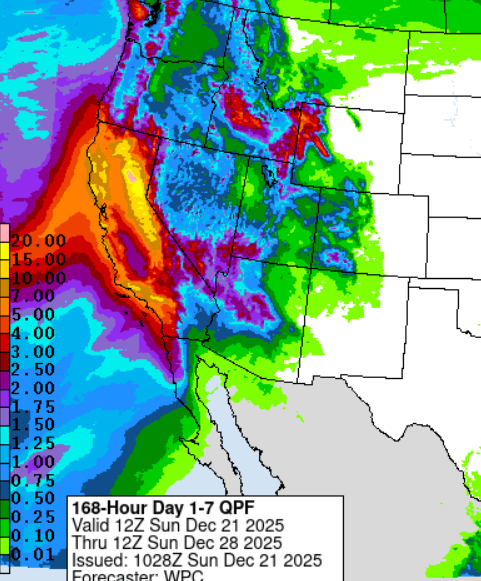 yes, the California precipitation forecast is very impressive, with many, many feet of snow possible in the Sierra Nevada. Doesn't look like as much will make in to Arizona, but the western deserts might get a fair amount of precipitation.