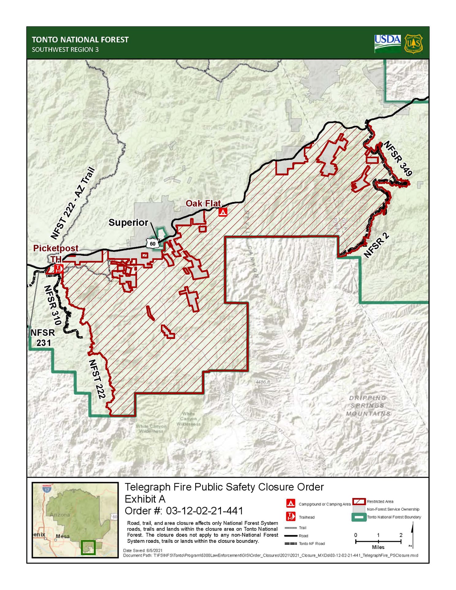 Oak Flat now under "go" evacuation status as part of a Forest Closure that includes Picketpost and AZT #17.