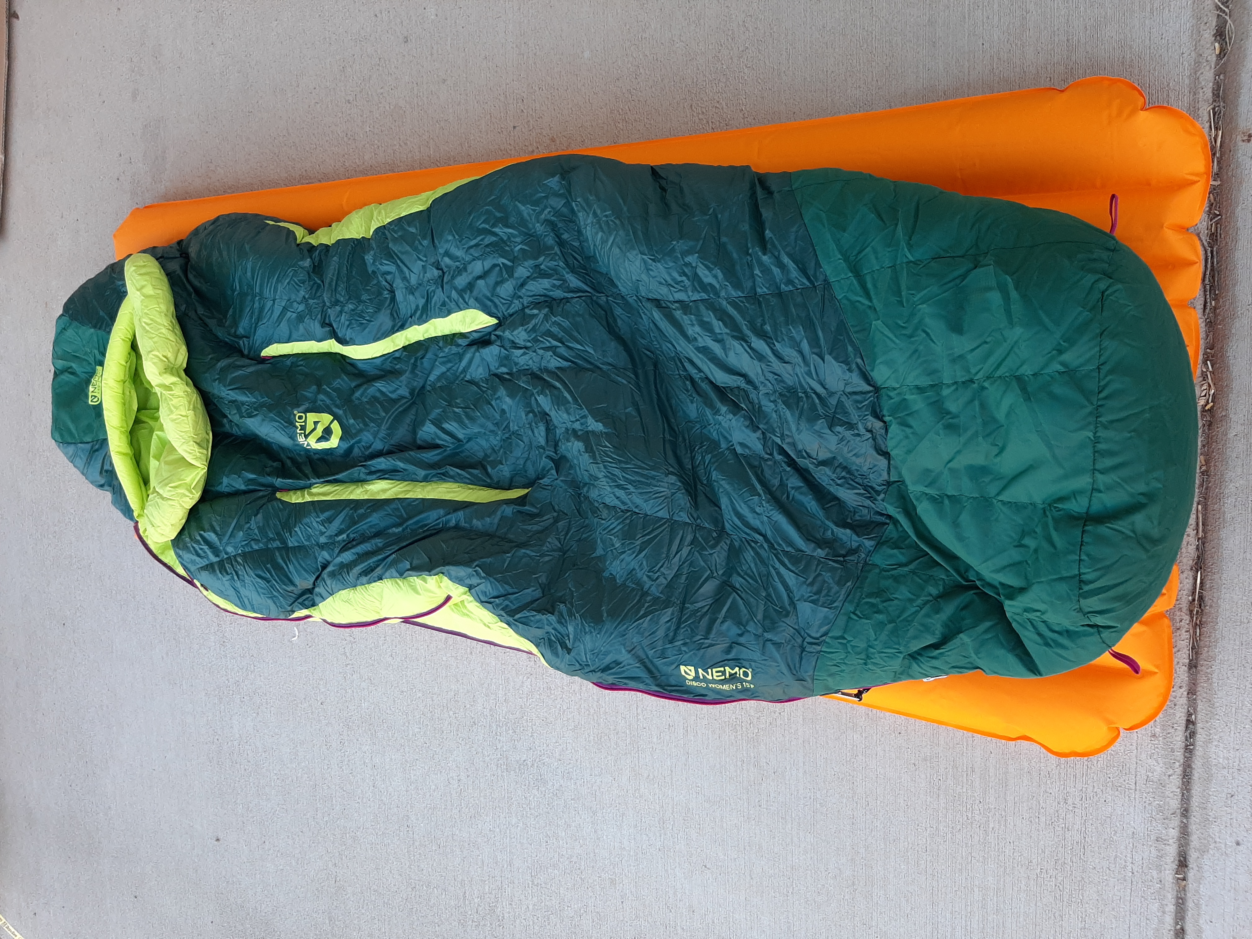Sleeping bag - NEMO Disco 15 degree women's regular. Retail $300. Like new, used twice. Great bag - light, super lofty and warm. Just a bit too bulky when packed for my smaller ultralight pack, especially with a bear canister. $200 plus shipping, unless you want to pick it up.