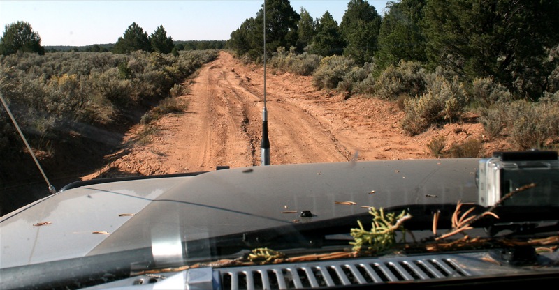 there are a couple of ways to drive there, but they aren't compliant with the MVUM...and you'd need a high clearance 4WD vehcile, and even then I would not drive it if the roads were wet