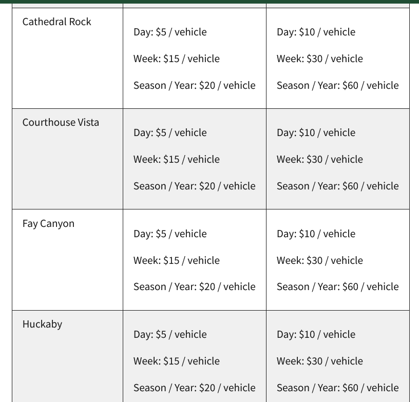 INCREASED fees proposed for numerous Sedona area sites and trailheads: $10/30/60 (currently 5/15/20)