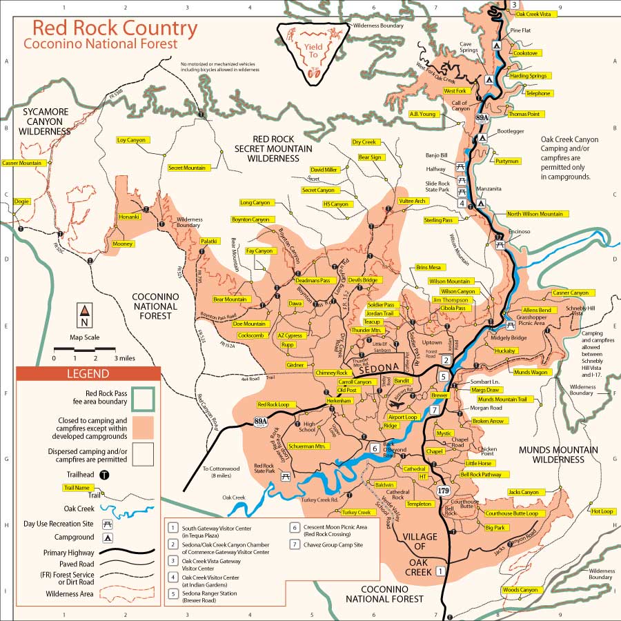 so what do they mean by the "red rock area"?? Munds Mountain Wilderness is certainly under this "area" and so is Sycamore Canyon and Wet Beaver Creek, for instance the Bell trail among others. No pass is needed there right?