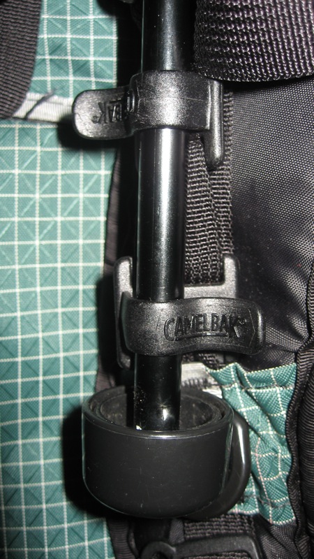 Here's a photo of the 'traps' attached to a ULA backpack, with a montbell ul trekking umbrella snapped into place.