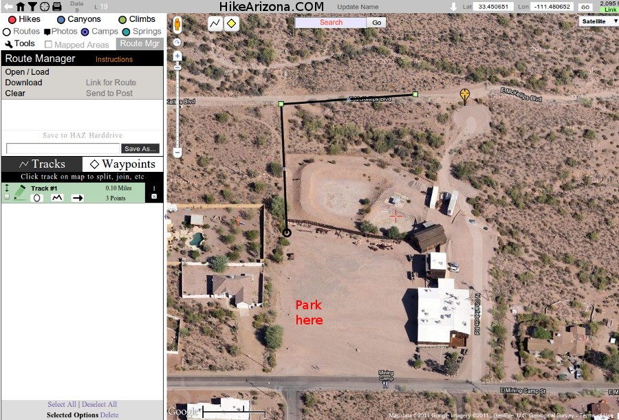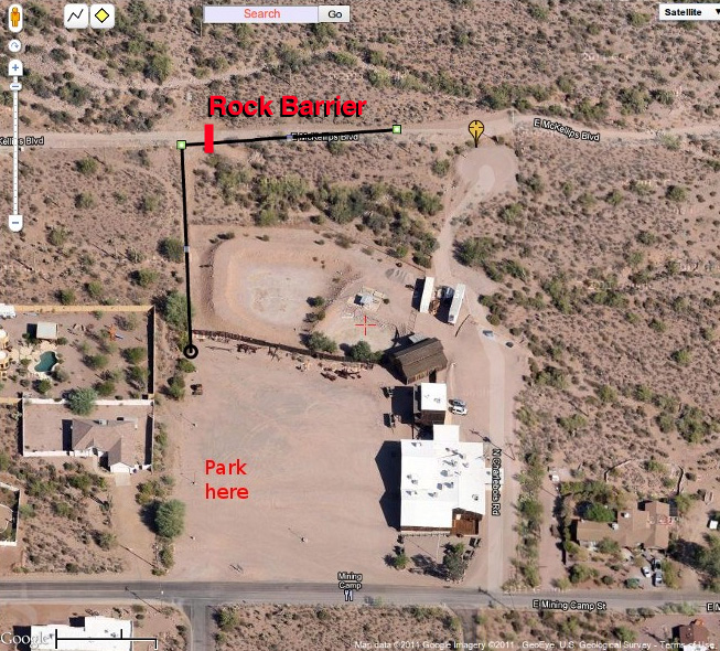 @Joe - It looked like the official "Trail" markers like you see around Tonto forest lands. Looks like Mining Camp may have given up a portion of their lot for the trailhead. Added the barrier to your map.