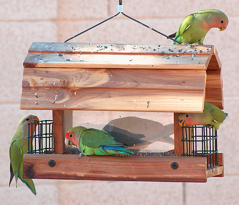 Peach Faced Lovebirds are doing well in AZ. They are escapees and have thrived and bred here in the Metro area. Another bird that you will see is called a Quaker Parrot. The Quakers have become so prolific that several "states" and municipalities have banned them completely. You cannot even have them as pets or transport them through a "banned" area without a permit.