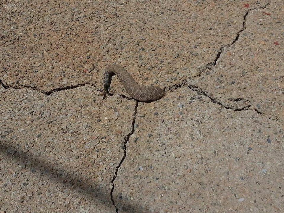 Apparently, he'd crawled into the crack in chase of a mouse. No word on the status of the mouse, but the snake was alive, stuck and rattling away.
