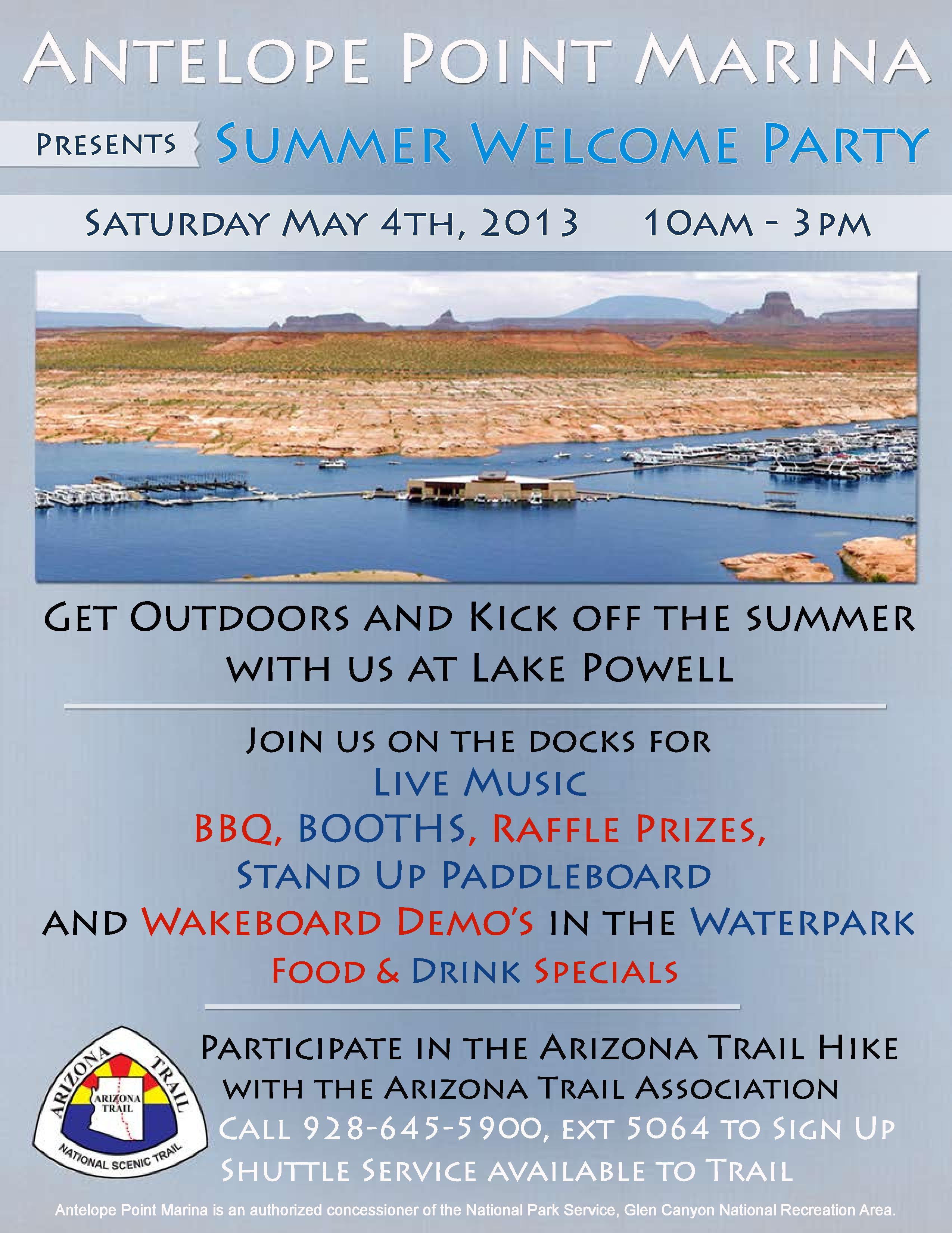 This Saturday, May 4th from 10-3 the Antelope Point Marina is hosting a summer kickoff dock party to celebrate Page as a Gateway Community of the Arizona Trail!
