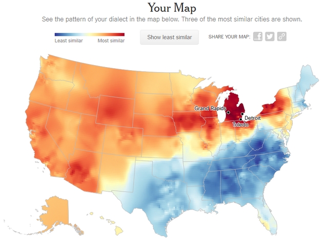 wow I am from Grand Rapids Michigan and it said I was from Grand Rapids Michigan or Detroit..pretty accurate..hmmm..now if only they knew what a "Michigan U-turn was"