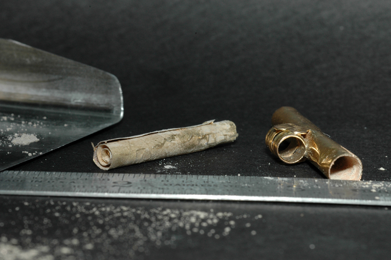 But also inside is a thin sheet of coiled gold soldered into the closed end.