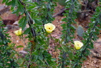 Candlewood, Coachwhip, Jacob's staff, flamingsword. Personally, the only common name I have ever heard it called is the Ocotillo. An icon of the Sonoran desert. If the hike is in the Sonoran desert, it will have Ocotillos, even if we haven't associated them on the dynamic map. Habitat: Rocky slopes, mountainsides, desert areas, especially well-drained slopes. Flowers: Bright reddish-orange up to 1". In clusters up to 12" at the end of the canes. 5 petals fused at the base to form a tube. The bright crimson flowers appear especially after rainfall in spring, summer, and occasionally fall. Description Shrub (not a cactus). Up to 20' tall and a spread of 15'. Many unbranched, cane-like spiny, thorny stems that spread outward. Resembles an inverted cone. Stems are normally leafless. Bright green leaves appear on the stems after heavy rains. Leaves are up to 2" long and 1" wide. When arid conditions return, the leaves turn brown and drop off. Comments:Native. Spectacular. An icon. Shares dominance with Saguaro and Palo Verde. Used for fencing and stems used to support thatched roofs. An important source of nectar for hummingbirds. Related to the boojum tree. "The common name is derived from the Aztec word for pine (ocotle) and the Spanish diminutive (-illo). Thus, "little pine"". Ronald J. Taylor. Desert Wildflowers of North America |