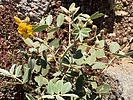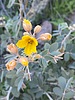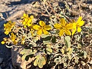 Senna covesii (Cassia covesii) Senna covesii (desert senna, Coues' senna, rattleweed, rattlebox, dais, or cove senna) is a perennial subshrub in the family Fabaceae, native to the Mojave Desert and Sonoran Desert in southeastern California, southern Nevada, and Arizona in the United States, and northern Baja California in Mexico. It is found on desert plains and in sandy washes between 500 and 600 m above sea level, and is very common in Joshua Tree National Park. The specific epithet honors ornithologist Elliott Coues. It grows to 30–60 cm tall, and is leafless most of the year. The leaves are pinnate, 3–7 cm long, with two or three pairs of leaflets (no terminal leaflet); the leaflets are elliptical, 1.0-2.5 cm long. The flowers are yellow in color, with five rounded petals about 12 mm long. This shrub is often planted by landscapers and as part of roadside wildflower programs. Flowers are visited by carpenter bees and bumblebees. Sulphur butterflies use the plant as a larval food source. Source Wikipedia |