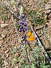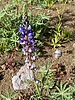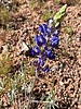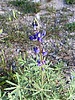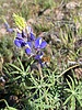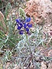 Lupinus sparsiflorus Common Names: aka Blue Lupine, Desert Lupine: Mojave Lupine. Habitat: Desert roadsides, slopes & mesas. Flowers: Violet-blue. White rare. distinctive with one petal on top and two on the bottom. In an elongated cluster. About 1/2" long each. upper petal (banner) has a yellow spot which changes to reddish after pollination. keel petals are short, wide & curve upward to a slender tip. hairy on the bottom. Description: Perennial herb. Up to 18" tall. 23 species of Lupine in Arizona. dark Green leaves with short, silky hair and with 7 to 10 narrow lanceolate leaflets. Comments: Poisonous. Following wet winters these can carpet roadsides. L. arizonicus flowers are more purplish-pinkish & a little shorter. It is usually at higher elevations with bright green leaves. |