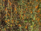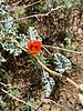 Sphaeralcea ambigua Common Names aka apricot mallow Habitat hillsides, roadsides Flowers Orange, Pink, red, white, light purple. Usually bright orange flowers, 5 petals, up to 1 1/2" in width. clusters at the upper part of the stems. Open long-branched panicle, petals orange, 2-3 cm, white anthers. Leaves Blades 15-50 mm, triangular, weakly 3-lobed, green or yellowish green, 3-veined, base wedge-shaped, truncate, cordate, crenate and wavy margin. Fruits Mericarps 9-13, less than 6 mm, 3.5 mm wide, truncate-cylindric, dehiscent. Description herb annual, 20" to 36" tall. Comments 16 species of Globemallow in AZ so there is a lot of variation. Efforts will be made to put the flowers in the right place but some may be misclassified. Bear with us, we're hikers not botanists. Sphaeralcea emoryi orange with a yellow perianth; S. coccinea, Scarlet Globemallow; S. Fendleri, Fendler's globemallow. Abutilon (Indian mallow) and hibiscus (desert rose mallow) are also part of the mallow family. |